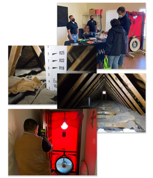Conduct comprehensive review of home to determine eligibility for natural gas energy saving services and blower door air leakage test
